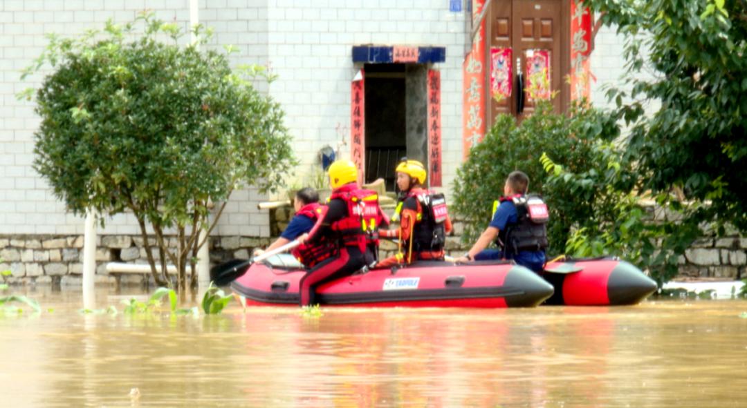 普定县消防救援大队共将救援人员编为4个小组,分别由4名党员带头,携带机动橡皮艇、救生衣等水域救援器材装备,主动疏散被困群众,组织群众开展自救工作。