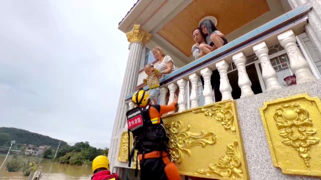 “22号上午10点我们接到报警,黄桶街道石包寨有群众被困。到达现场后我们发现整个村寨基本被淹没,水深的地方大约3到4米。了解情况后,我们立即开展救援,利用皮划艇赶往被困村民家中的位置,随后利用楼梯将被困人员救出并转移至安全区域。”普定县文昌路消防救援站通讯员伍太健说,当天共在此村寨救助被困村民3户12人。