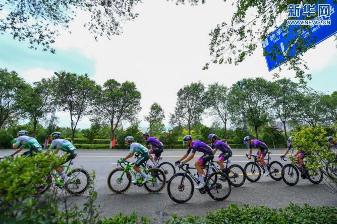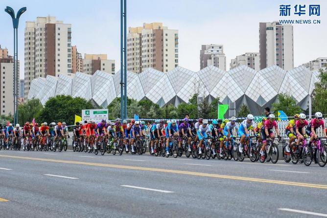 7月7日,2024第二十三届环湖赛第一赛段西宁绕圈赛比赛现场。新华网 潘彬彬 摄