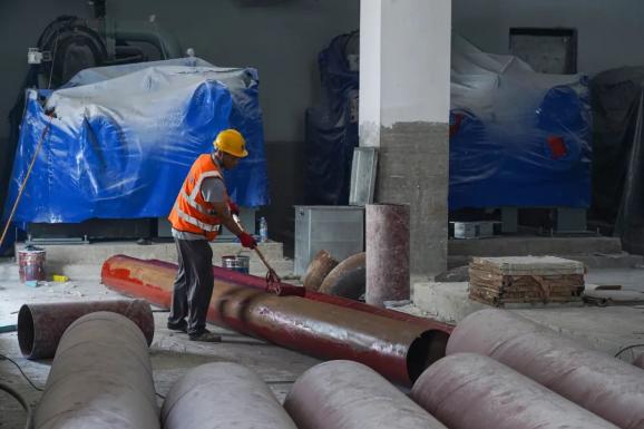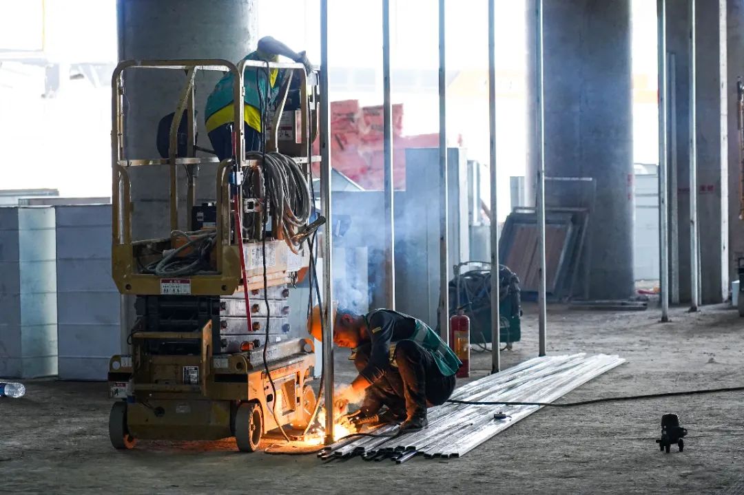 走进项目内部,工人们正分头忙着安装空调、水电,搭建吊顶、消防管道、机电等基建设备安装,“大干快上”的建设热潮扑面而来。