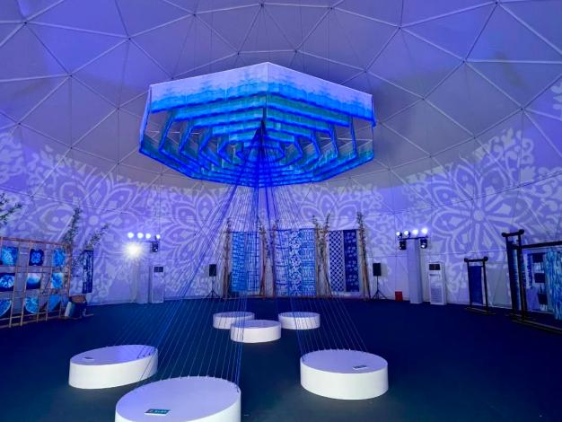 在天瀑灵韵演出厅旁,还分布着两座相似的球形建筑,分别是非遗艺术馆和主题文创馆,两个展馆主要是围绕本地特色的少数民族文化、 茶文化、非遗文化等布展,后期将引进当地文创产品,为游客展示安顺文化的独特魅力。同时,在非遗艺术馆,将会把入馆的民族服饰、蜡染服饰等提前植入系统内,通过AI技术让游客体验无实物试穿,快速感受服饰上身效果,为游客提供新奇的文化探索之旅。