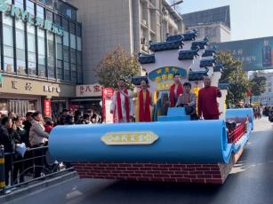 外街特别设置了西关记忆花车、蒸盆传说花车、长城之父花车、贡享竹溪花车等特色展位,根据竹溪特色地域文化量身打造,老人小孩都爱看。