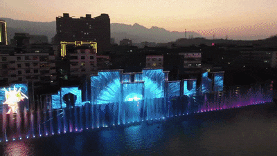 竹溪河水秀剧场借水生景,引入5G虚拟现实、全息巨幕、CG影像、多媒体数控等现代声光电技术,将花式喷泉、雾森激光形式等组合呈现,是武陵不夜城内别具一格的沉浸式水景互动体验项目,夏天的晚上站在河边看水幕灯光秀,凉快得不得了。