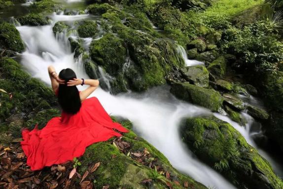 爱情故事经久不衰,沧海未换桑田,你来到黄花沟,女儿瀑从六七十米高的悬崖飞泻而出,如一束银练划破青冥,气势如虹。女儿瀑、女儿潭相依相生,从女儿潭拾级而上,登女儿梯,瀑布飞花溅玉,激起凉风细雨扑面而来。在女儿梯旁边,有一条幽径,向左蜿蜒而去,过栈道,上得高处,有一天然溶洞幽凉清静。
