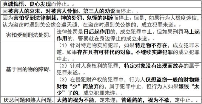 【注意】犯罪人对“能够继续犯罪”有认识错误时,按主观上的主动性与被迫性定,主观上认为自已是被追放弃犯罪的,就定未遂;主观上认为自己是主动放弃犯罪的就定中止。也即,主观怎么想,就怎么定。在此坚持主观说。