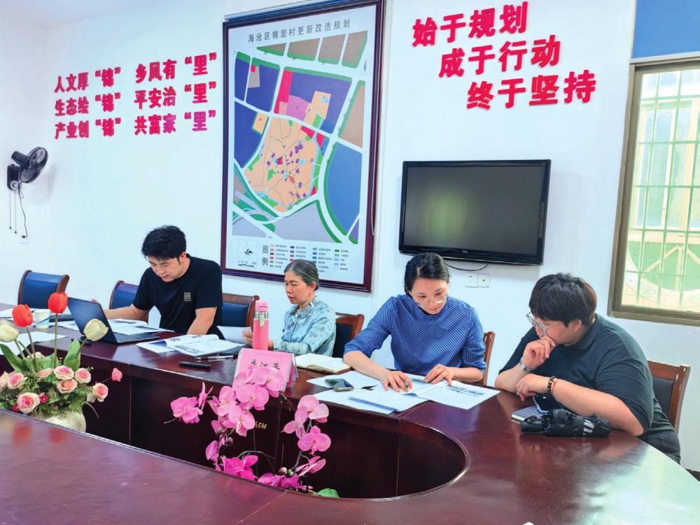 台青小赖(右一)每周会与锦里村在地热心乡贤、设计团队举行侨史馆规划及内容补充会(2024 年 4 月 15 日摄) 受访者供图