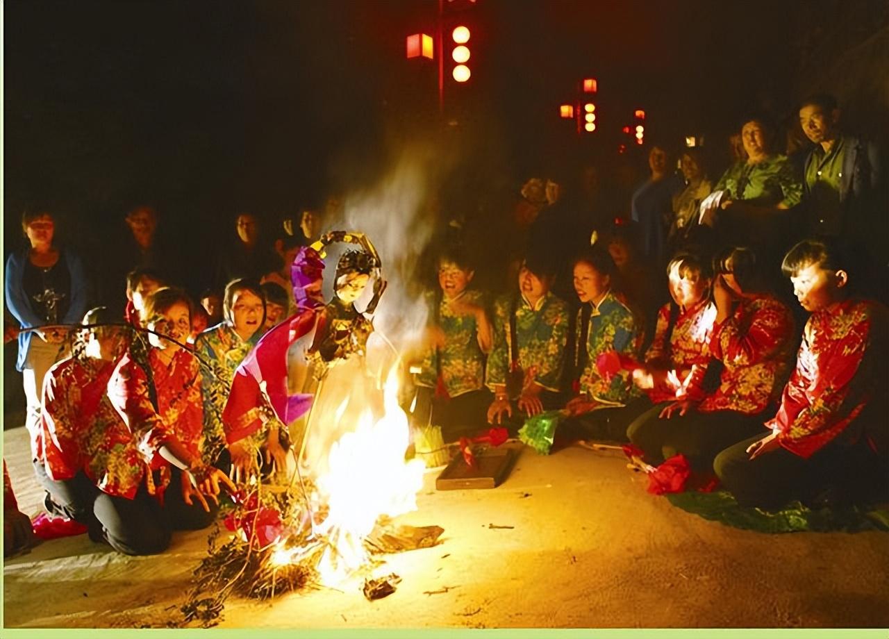 在有点哀婉的唱声中,嫂子们领着那些乞巧女儿们列队来到河畔,用一根红头绳当作天桥,当香烛燃起要烧掉陪伴她们多日的巧娘娘时,只见她们神情凄婉,唱着唱着眼泪就簌簌地流淌下来,在烛影中闪着的泪珠,那是一滴滴的乡愁,也是感悟花谢花开的有情之念吧!(文/胡询之)