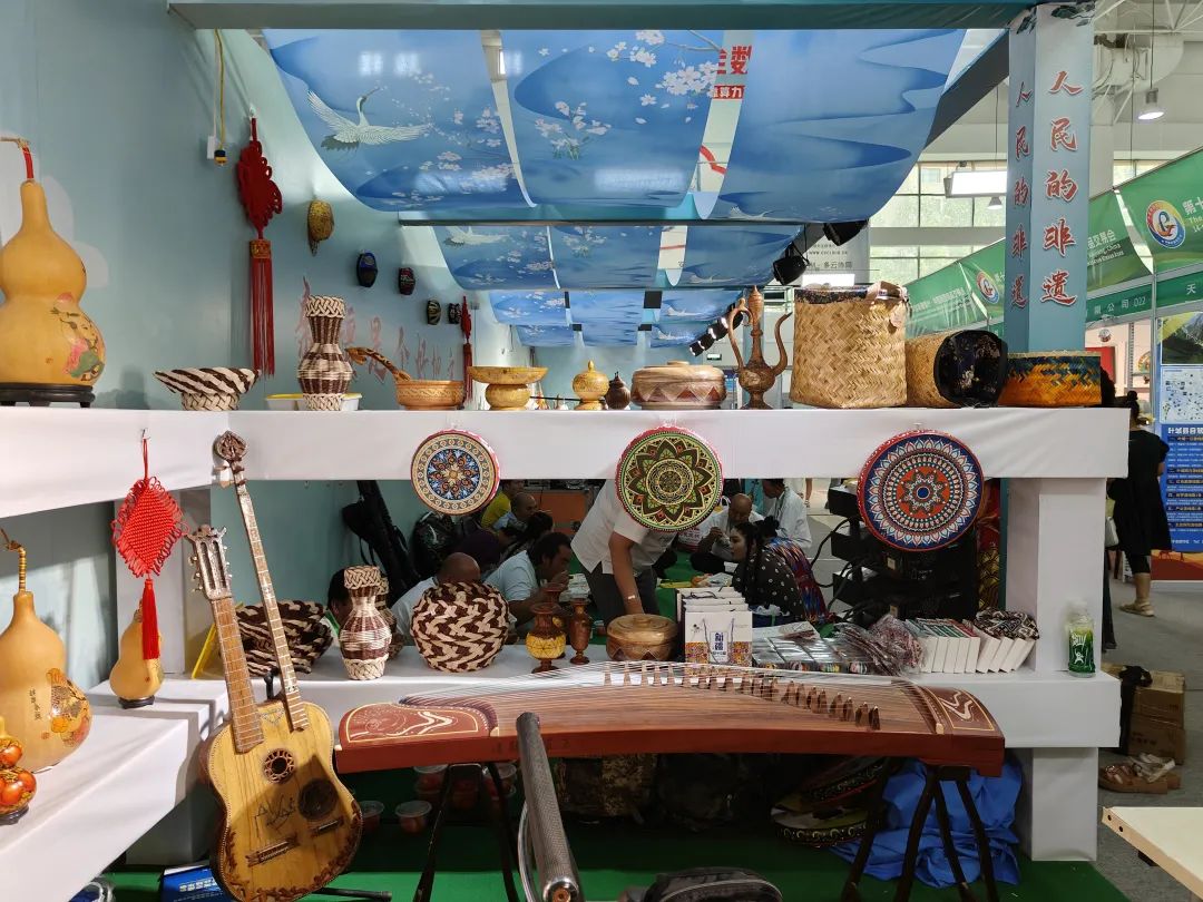 “丝路非遗·魅力喀什”展区非遗展品。克德利亚 摄