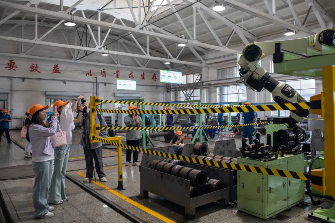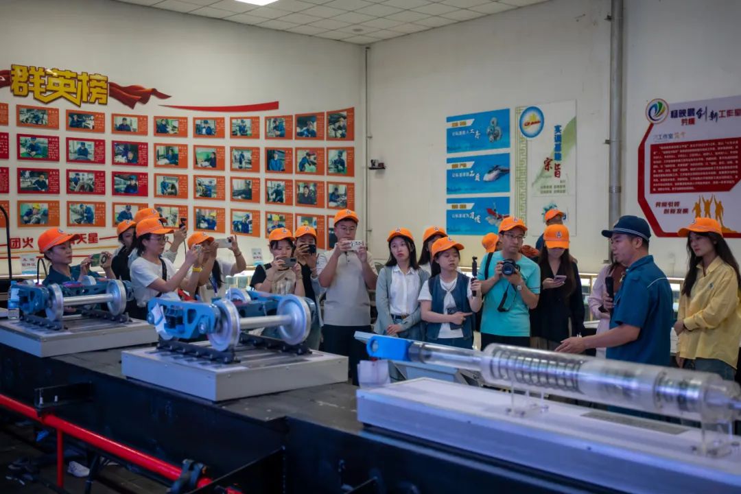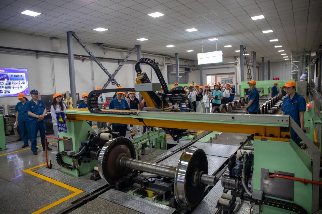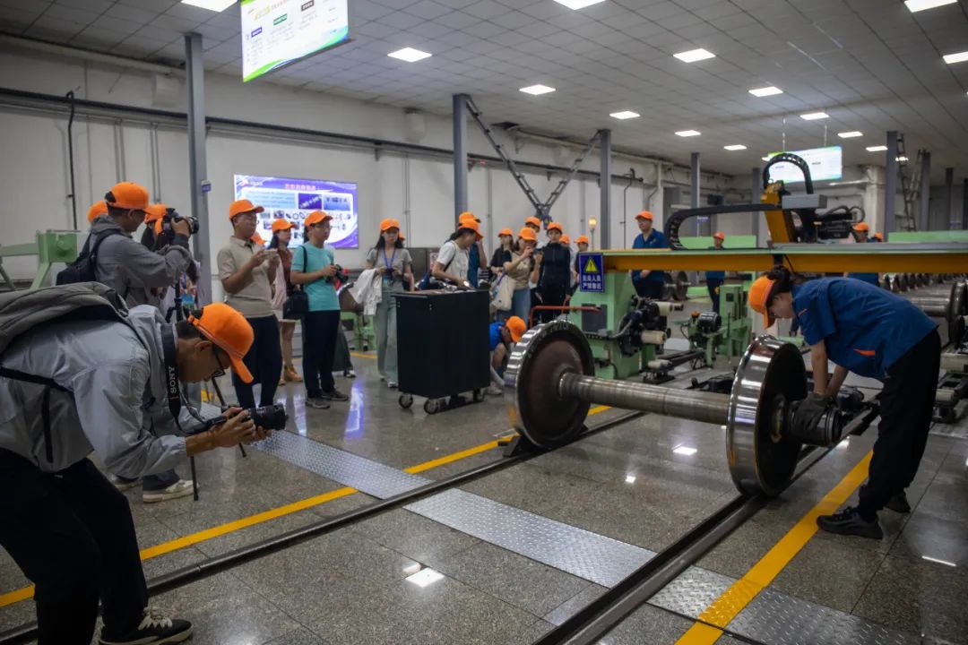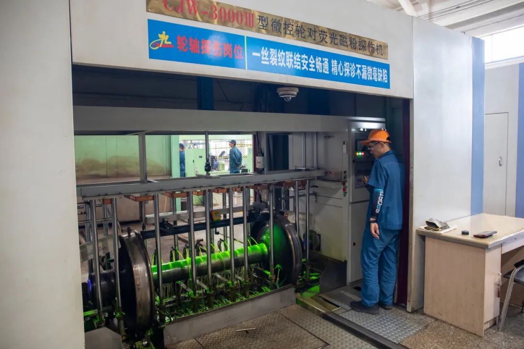 最后,“发现团”来到轮轴车间观摩轮轴拆卸、压装、探伤等工序。车辆轮轴的主要作用是承载、走行和导向,被称为车辆的“两只脚”。