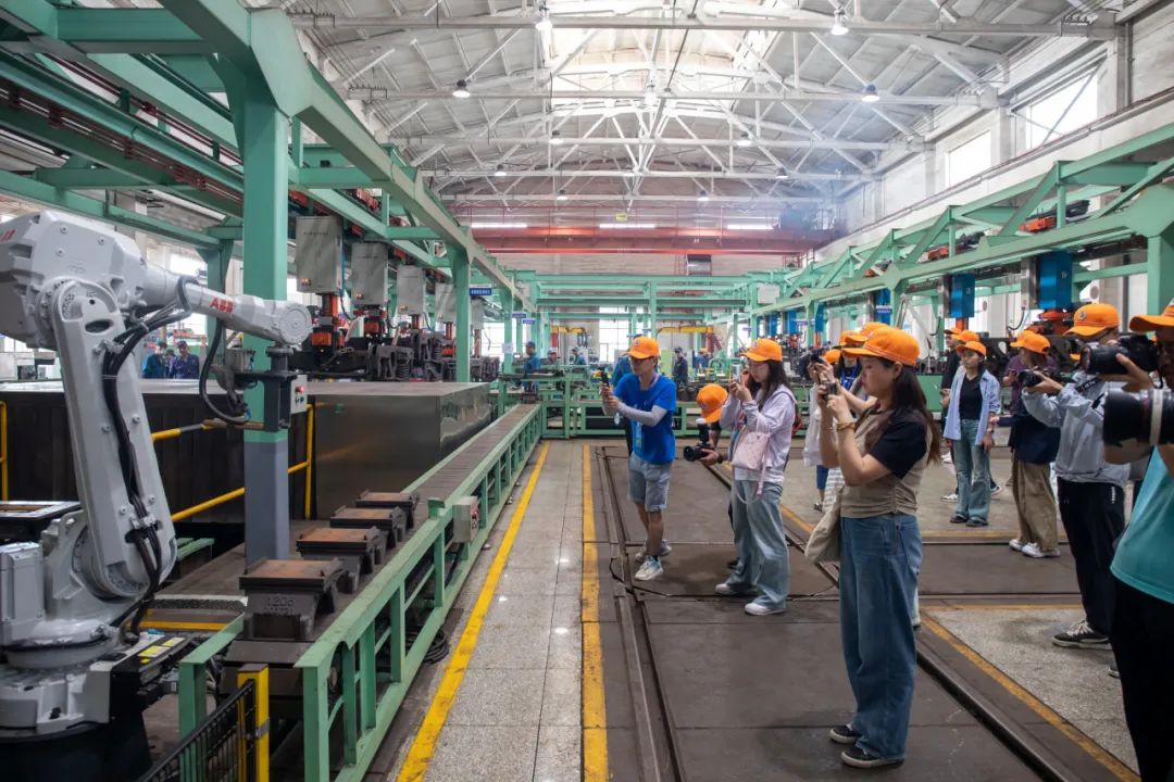 随后“发现团”来到检修车间,现场观看、了解货车车辆全数分解、拆卸、检测、修理、组装等环节。