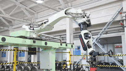 机械手臂,伸展收缩自如,在数控操作下实现了轴承拆卸、压装的自动化模式。