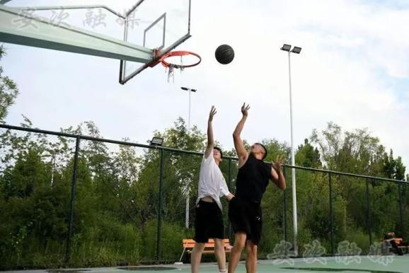 在廊坊市安次区龙河中央公园,市民在打篮球。(韩沙沙 摄)