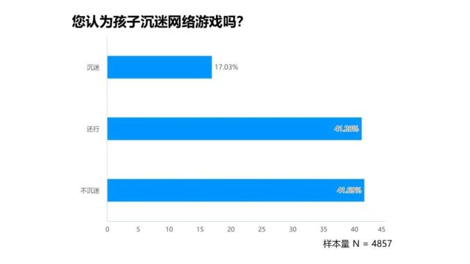 1. 82.97%的家长认为自己孩子对游戏的依赖在可控范围内,17.03%的家长认为自己孩子沉迷游戏。