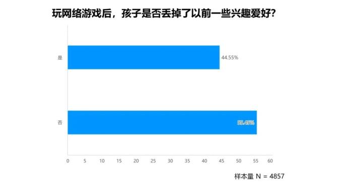 4. 半数以上家长(55.45%)认为网游不会让孩子丢掉以前的兴趣爱好。