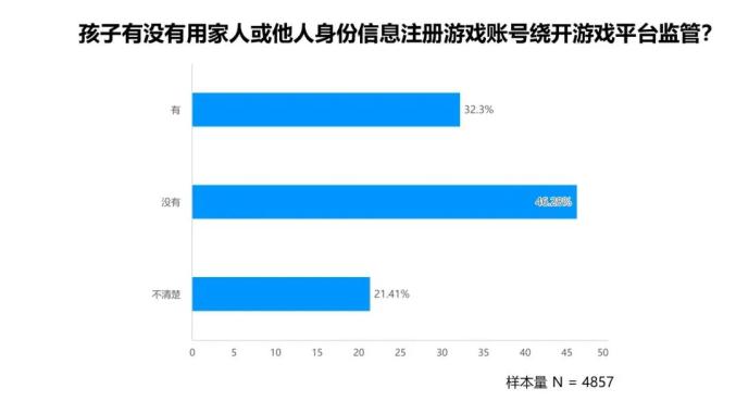 3. 32.3%的未成年玩家会用家长或他人身份信息注册游戏账户绕开平台监管,46.28%则不会。