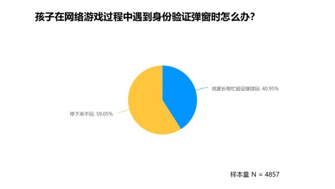4. 未成年玩家遇到游戏身份验证时,59.05%会停下来不玩,40.95%会找家长帮忙验证后继续玩。