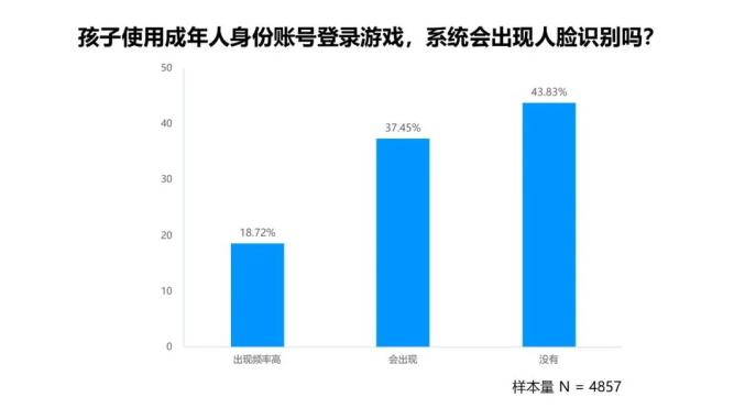 5. 43.83%的网游平台不会以人脸识别的方式验证未成年人是否冒用成年人身份信息登录游戏。
