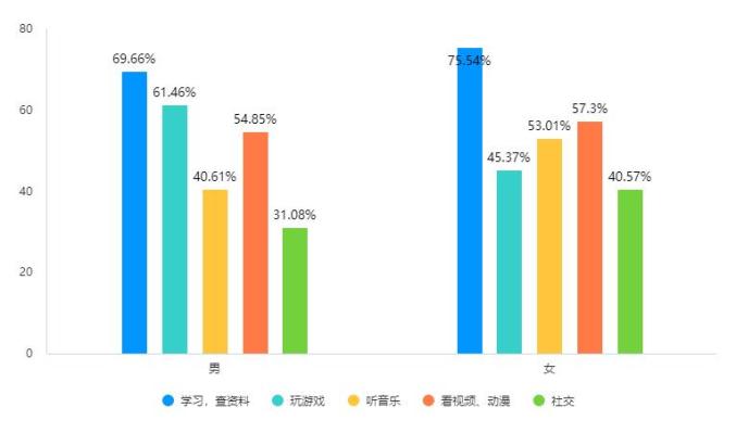 (一)学习是未成年人上网的主要目的,网络使用存在性别差异。