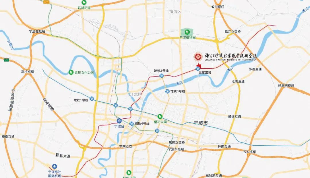 ②宁波客运中心:乘地铁2号线红联、宁波大学方向至三官堂(浙江纺织服装学院)站。