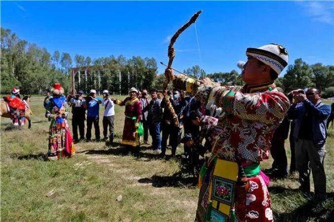 当新娘快要到新郎家的大帐房时,男方家需要在路旁燃起两堆火,让新娘从中间通过,然后新郎弯弓连向新娘射三支箭。这是遵循古老的传统,辟邪、求福的仪式活动。