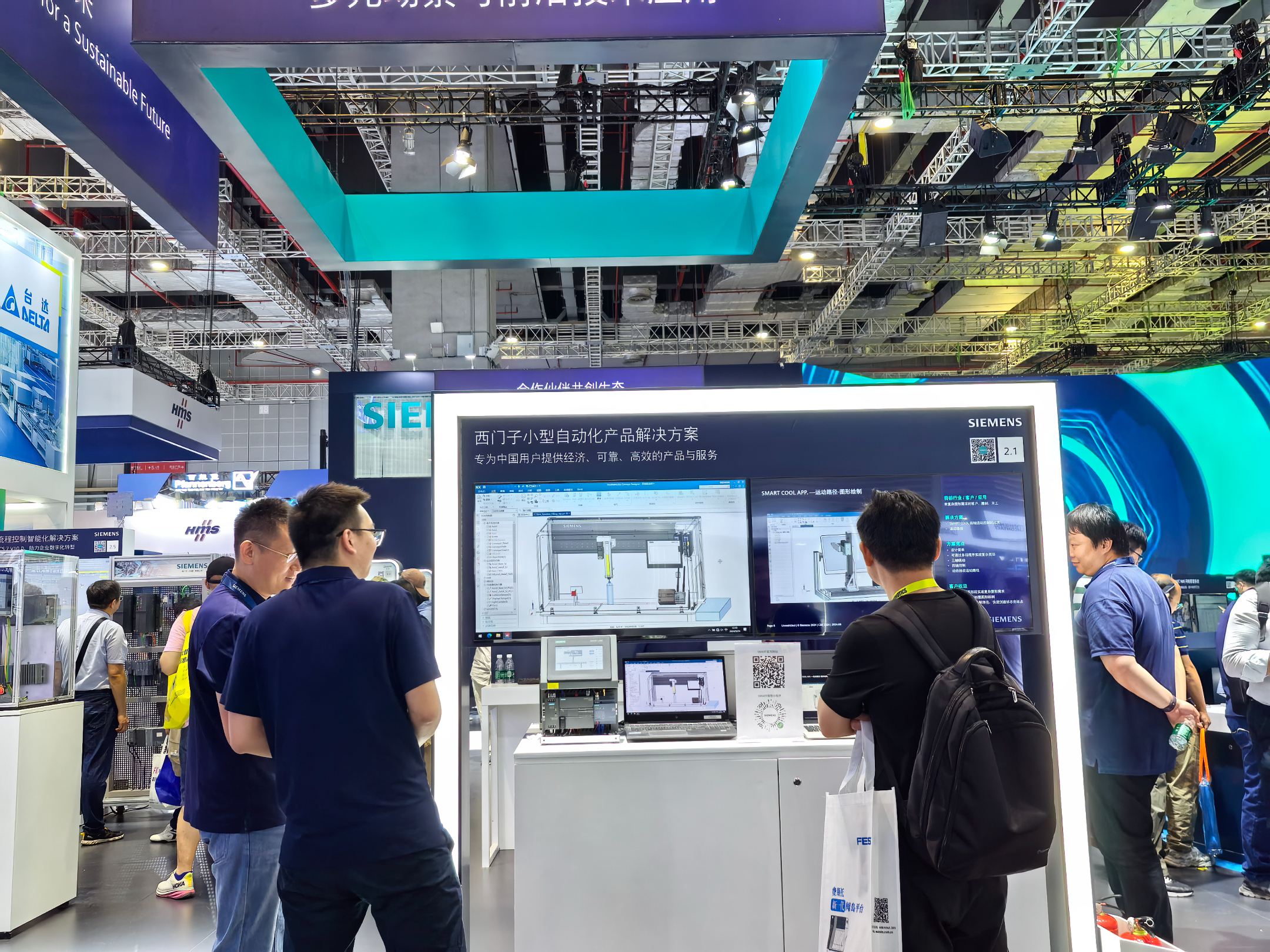 今年工博会,台达响应国家“新质生产力”的“创新”和“质优”精神,通过“零碳工厂”“智慧工业楼宇”“厂区微电网”和“AI数据中心”等场景化设计的板块,具体展示了台达以绿色制造为基础、落实新质生产力的成果。