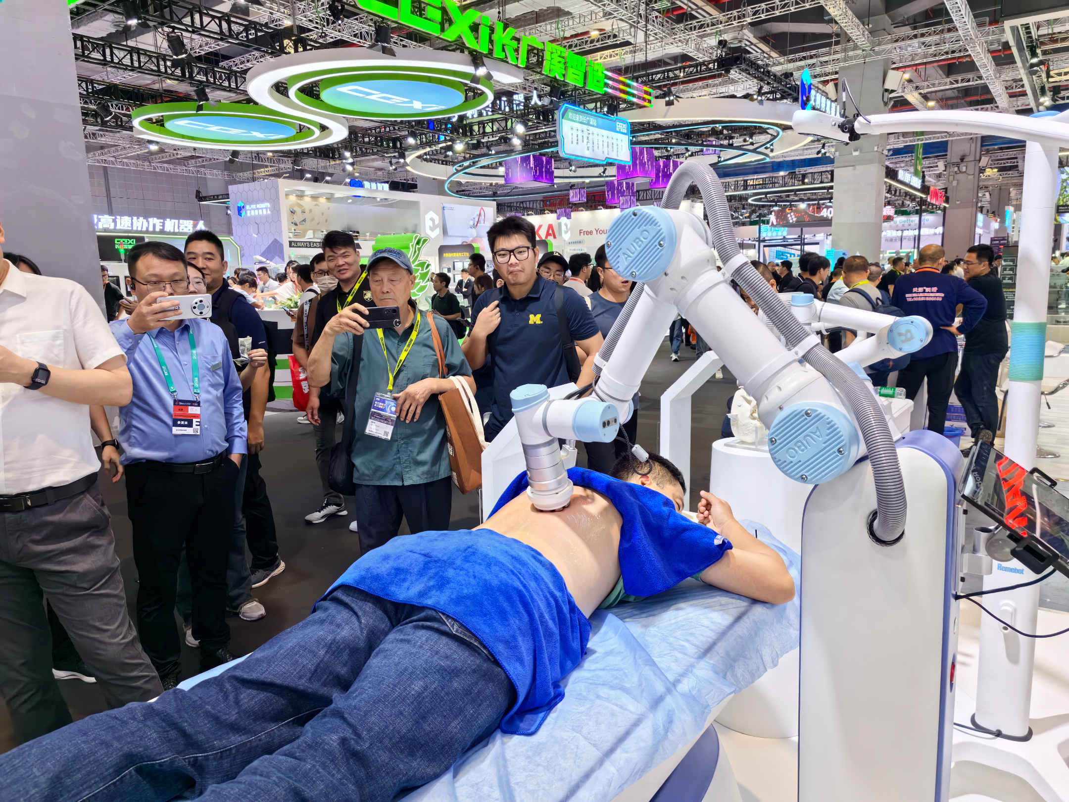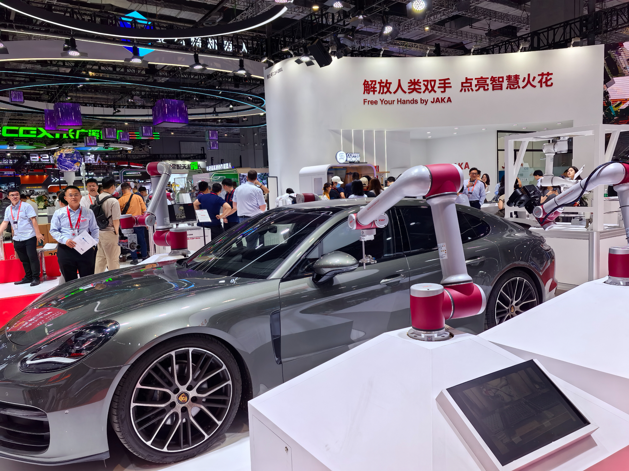 在其“汽车智能岛”特色展区,汽车产业链及整车制造生态系统一目了然,参观者能直观感受智能机器人全程自动化进行玻璃涂胶、检测车身、装配零部件等。“与工业机器人相比,协作机器人至少能节省50%能源耗损。”节卡机器人副总裁王峰介绍。