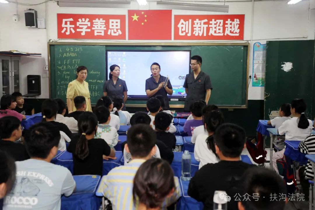 随后,张素敏、杨思勇法官为同学们发放了《送法进校园普法口袋书》等法律书籍,通过书中通俗易懂的典型案例让孩子们学习《中华人民共和国未成年人保护法》《预防未成年人犯罪法》《未成年人网络保护条例》等与未成年人相关的法律规则。