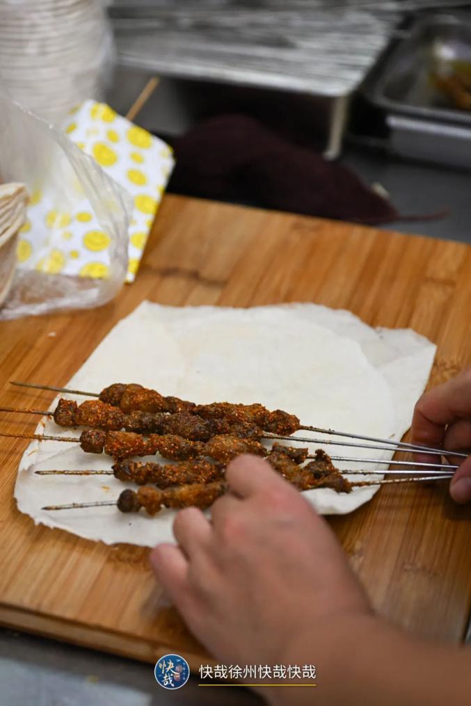 5串1饼是“头牌”,卷饼的香气经过大块的肉筋、孜然、辣椒的加持,一口下去,不由得感慨“人间值得”啊!真办肆。