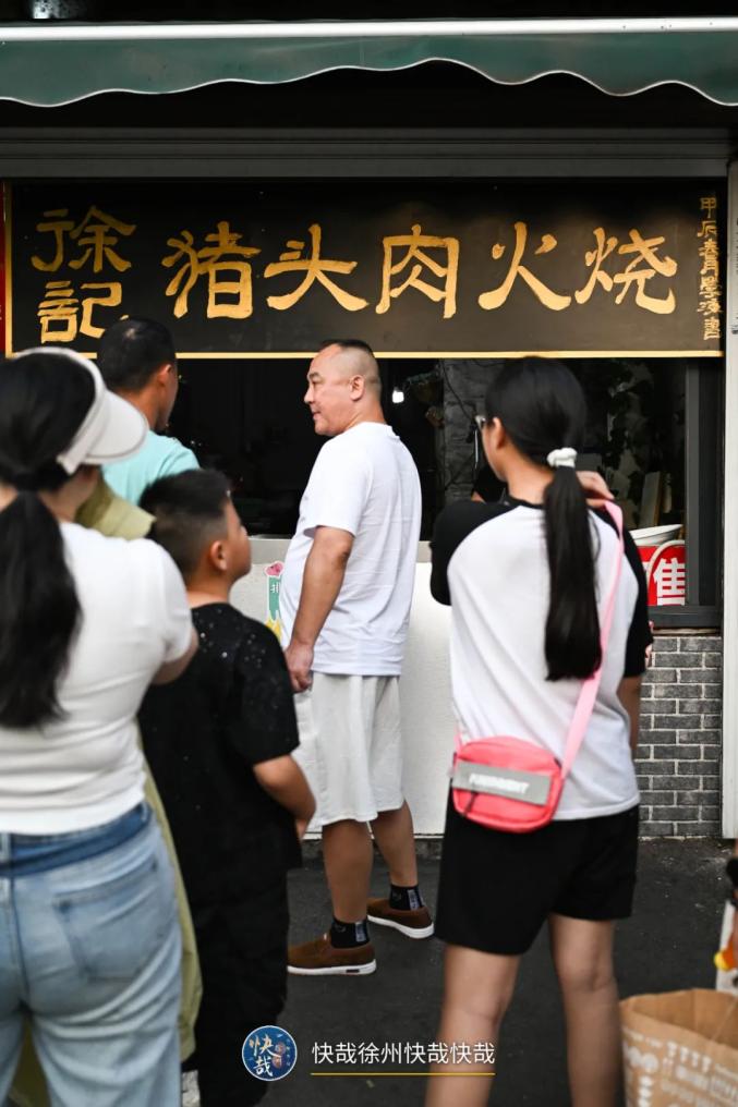 建国刘记米线隔壁的徐记猪头肉火烧,排的队伍不比米线店逊色。