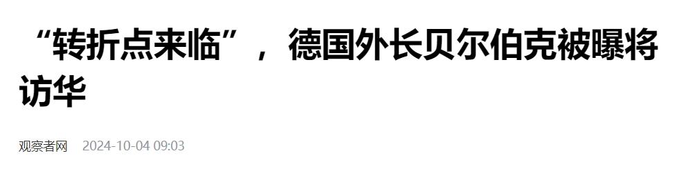 “转折点来临”,德国外长贝尔伯克被曝将访华