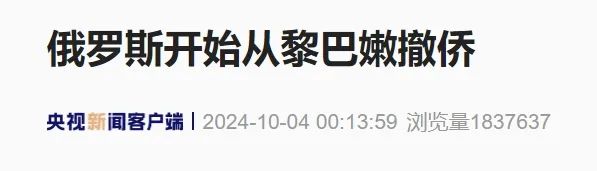 俄罗斯紧急情况部部长库连科夫当地时间10月3日表示,根据俄罗斯总统普京下达的指示,俄罗斯已经开始从黎巴嫩撤侨。当天一架载有60名俄罗斯外交人员家属的专机离开了贝鲁特,将于当天晚些时候回到莫斯科。