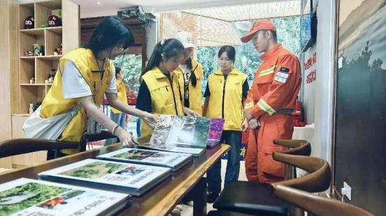 景迈山申报世界文化遗成功后,世界各地的游客慕名而来。国庆期间,景迈山驻防分队充分利用一楼消防宣传展厅科普防灾减灾常识。指战员用通俗易懂的语言,为群众现场讲解消防安全和应急疏散逃生常识,并利用图板中真实的火灾案例图片和文字,让游客更加深入地了解近年来全国的发生典型火灾。如今,这里已成为景迈山游客打卡和学习消防知识的“流动课堂”。