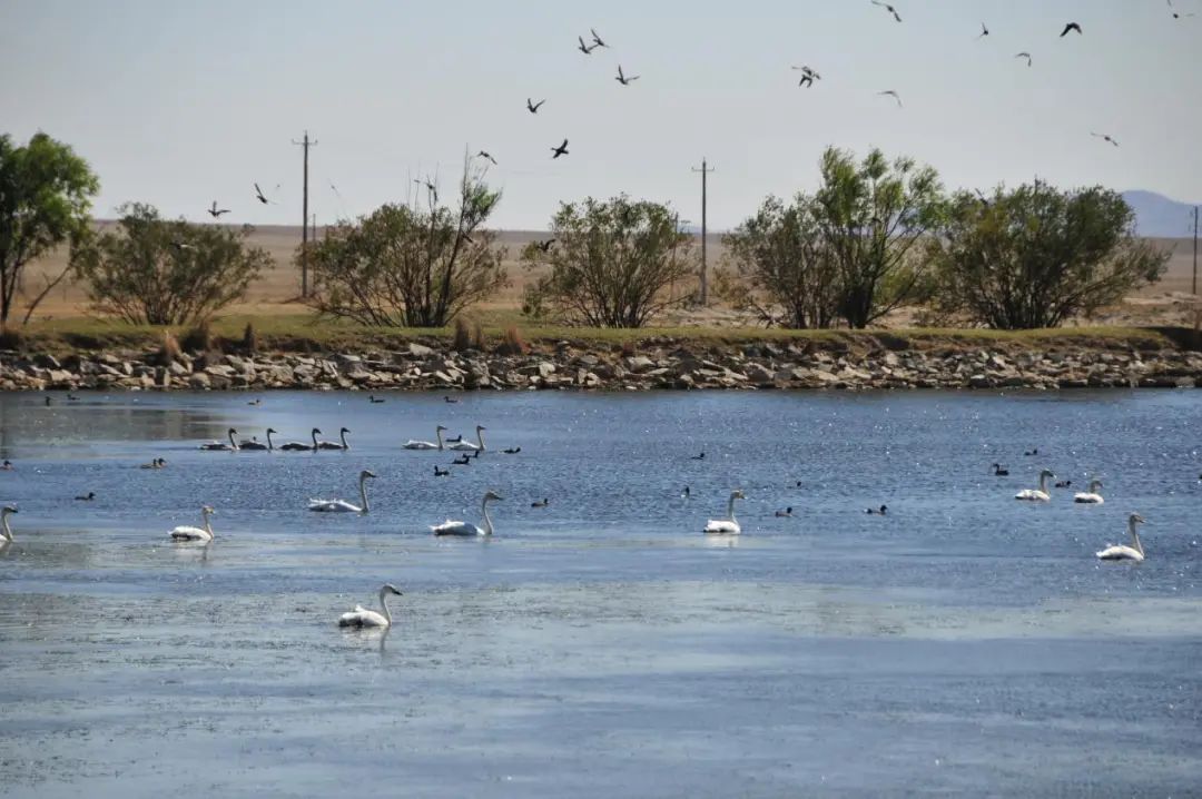 在秋日阳光的照耀下,东湖湿地与广袤草原融为一体,展现出别样的生态风貌。华北油田阿尔善东湖湿地位于内蒙古锡林郭勒盟,由人工湖泊演变而来,总面积1.5万平方米。近年来,华北油田改善湿地生态环境,2023年这里成为中国石油首批生物多样性保护地。湿地周边树木葱郁,吸引数十类水鸟栖息,是候鸟迁徙中继站。湿地既为华北油田二连油田员工提供休闲场所,也成为途经游客的打卡地,广受好评。