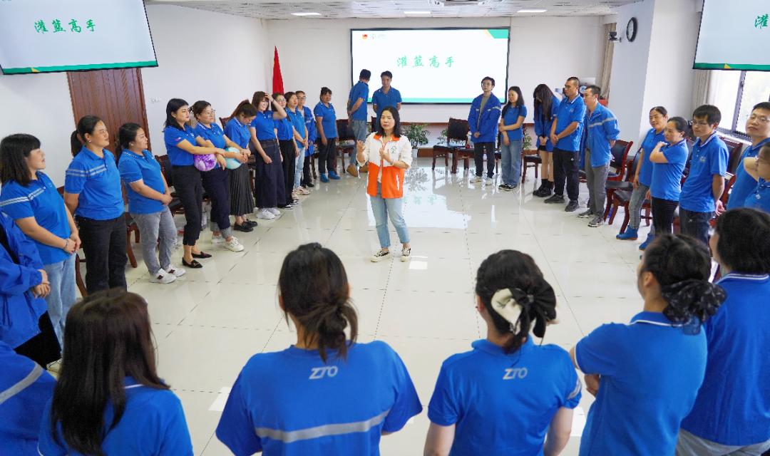 在中通物流园内,50余名快递员、操作员、客服员等一线青年员工在心理咨询师带领下开展了一场全“心”的体验活动,为旺季来临加油打气。