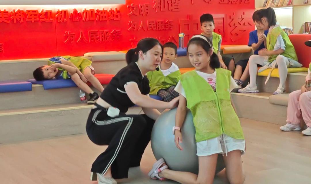 将军路青少年空间里,老师正带着小朋友们体验冥想、呼吸、运动放松等调节身心的方法,感知从“体验-反馈”模式探索自己身心的变化。老师强调,感到紧张和压力时,使用一些放松训练方法,可以让自己元气满满、焕发生机。