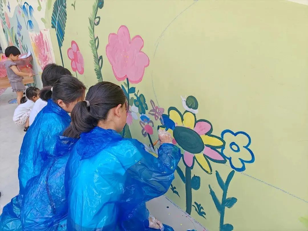 广场周围连接的矮墙上,则是一幅幅与程桥二村“五心家园”相关联的图景。“连心话廊”“匠心忆园”“孝心车位”“开心会馆”“舒心宅院”等元素都生动地体现在墙面上。“这样一看,就知道这是专属于我们程桥二村的记忆。”居民们都对这个设计十分满意。在墙面绘制的过程中,社区的老少居民一同拿起颜料和画笔,一笔一划为科普广场添彩。