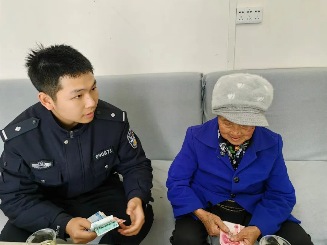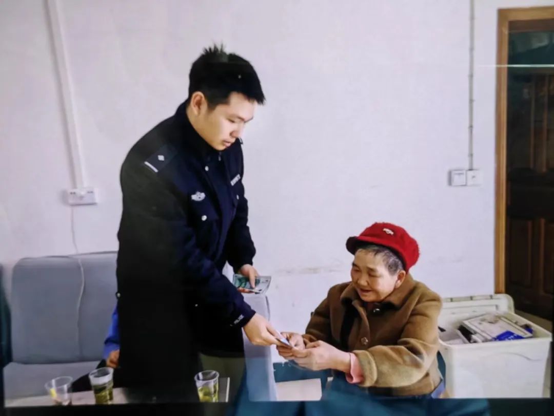 ▲民警将钱财返还到被骗老人手中