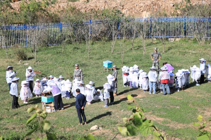 “经过这两年的发展,我们发现基地研学的活动内容不够丰富,结合观山湖区的自然资源,我们引进了几十箱中华蜂进行养殖,发展乡村特色产业的同时,新增蜜蜂研学活动,助力乡村全面振兴。”据贵州三分地农业科技(集团)有限公司总经理田庆松介绍,目前,该基地中华蜂养殖达400箱,所生产的五倍子蜂蜜深受市场欢迎,因此让他们信心倍增。
