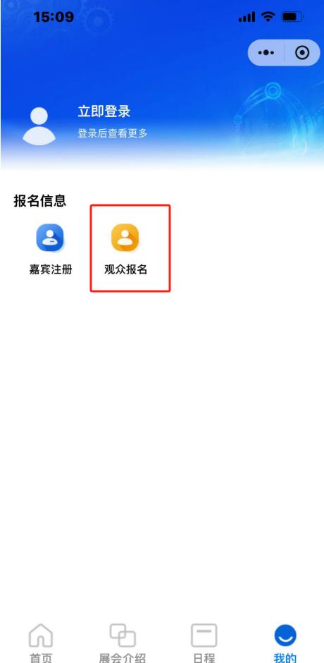 第一步:打开微信小程序“数博会注册”,点击右侧“我的”登录。