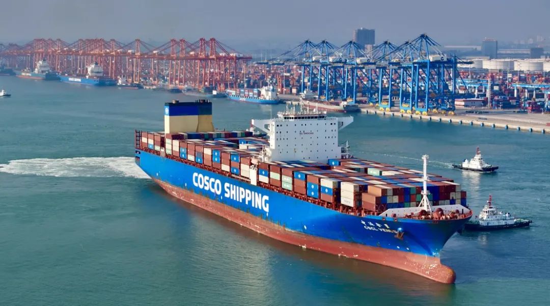 15万吨级集装箱船舶“中海金星”轮满载集装箱驶离钦州港。融媒体记者 刘宇翔 摄
