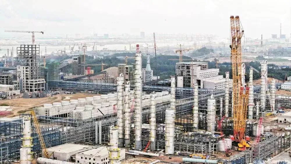 广西恒逸高端绿色化工化纤一体化项目施工现场。