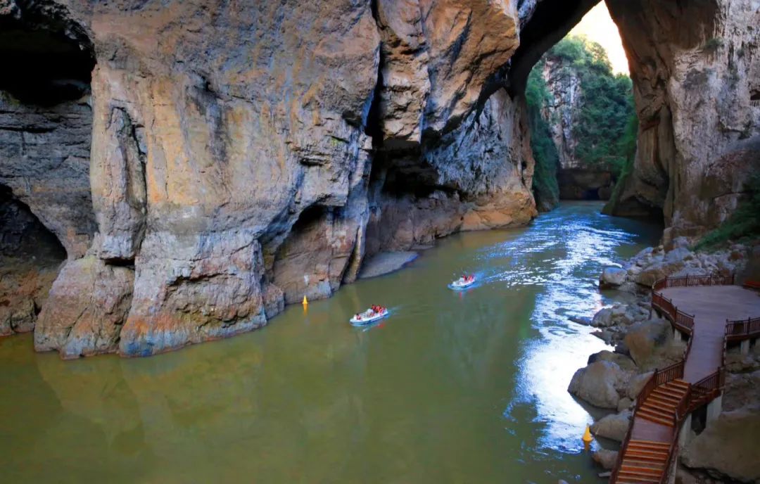 第一洞天是一个巨大的旱洞。你在洞口内隐藏的狭窄洞道里,懵懵懂懂的转了几道弯,便闻水声渐大,忽见天光豁然,下端出口处原来是一座小电站,飞瀑如雪,跃入洞外明艳的峡谷河里。攀出上端的曲折洞道便是峡谷,这才觉得第一洞天仿佛是设在人间与仙界之间的迷官,隔绝了来路,恍如金庸小说中描写的那种神奇幽谷。