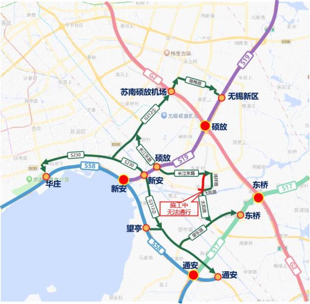 (一)S19硕放收费站和新安收费站关闭后,可通过华庄收费站、无锡新区收费站、苏南硕放机场收费站、东桥收费站、望亭收费站、通安收费站上下高速。