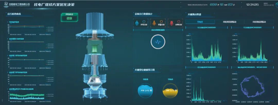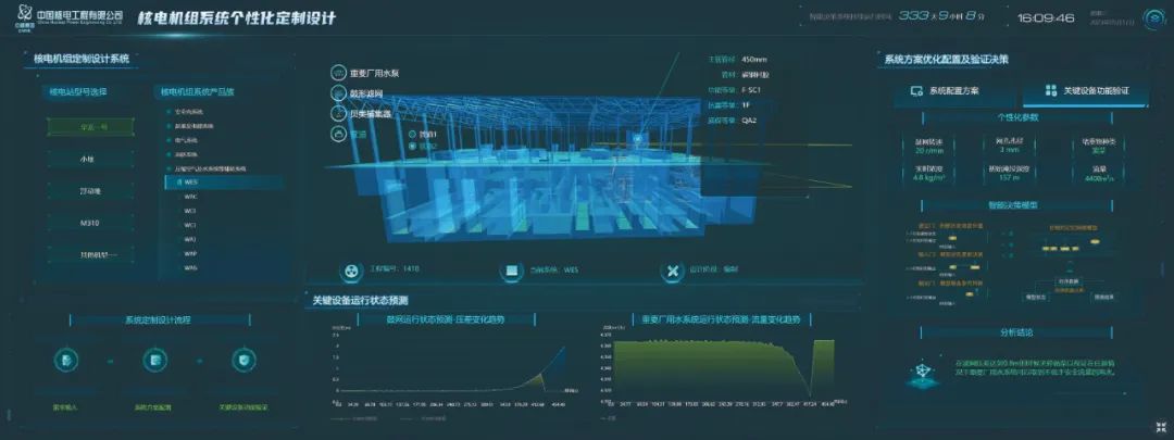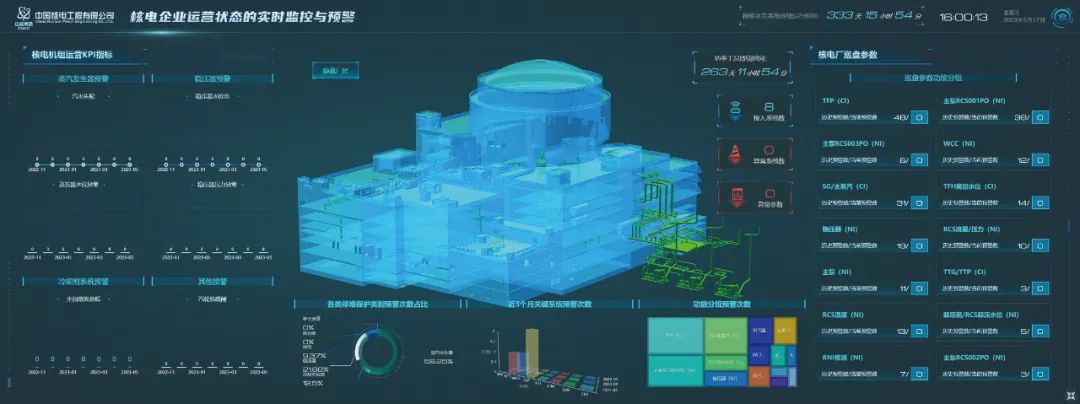 智能核电厂作为未来发展趋势,“华龙一号”后续机型必需具备相应能力。目前,中核工程已经开发了“伏羲核电智能决策系统”,可有效支撑核电系统个性化定制设计、装备制造工艺参数规划、机组运行状态监控预警、重大设备维修优化、核应急决策和双馈式延伸服务等6个场景的智能决策应用。以机组运行状态监控这个最直接影响核电安全性和经济性的关键任务为例:在机组运行状态监控方面,按现行规程,主控操纵员需每两小时、人工逐一核查1600余项运行参数,翻阅大量技术文件,并结合现场检查,辨识潜在运行风险,准确预警难、检查效率低。“伏羲”系统可提供机组运行状态实时监控与预警等功能,可在机组偏离正常运行的早期阶段,主动提醒操纵员,预先采取应对措施,减少非计划停机,有效提高机组可用率。