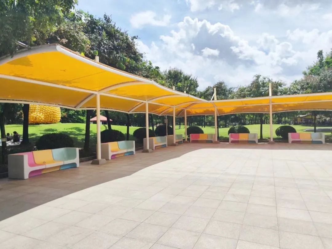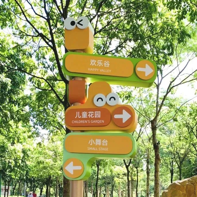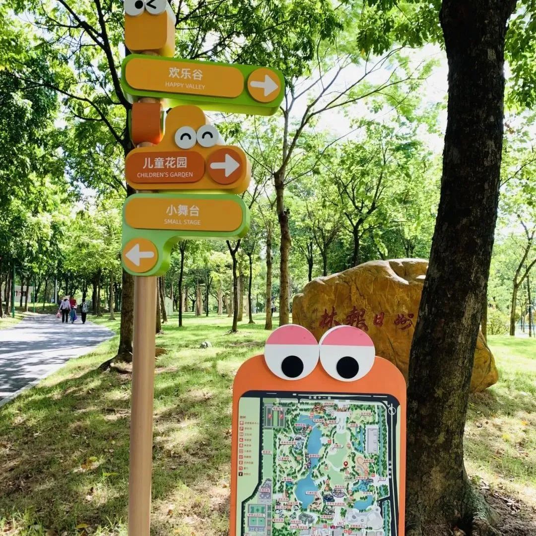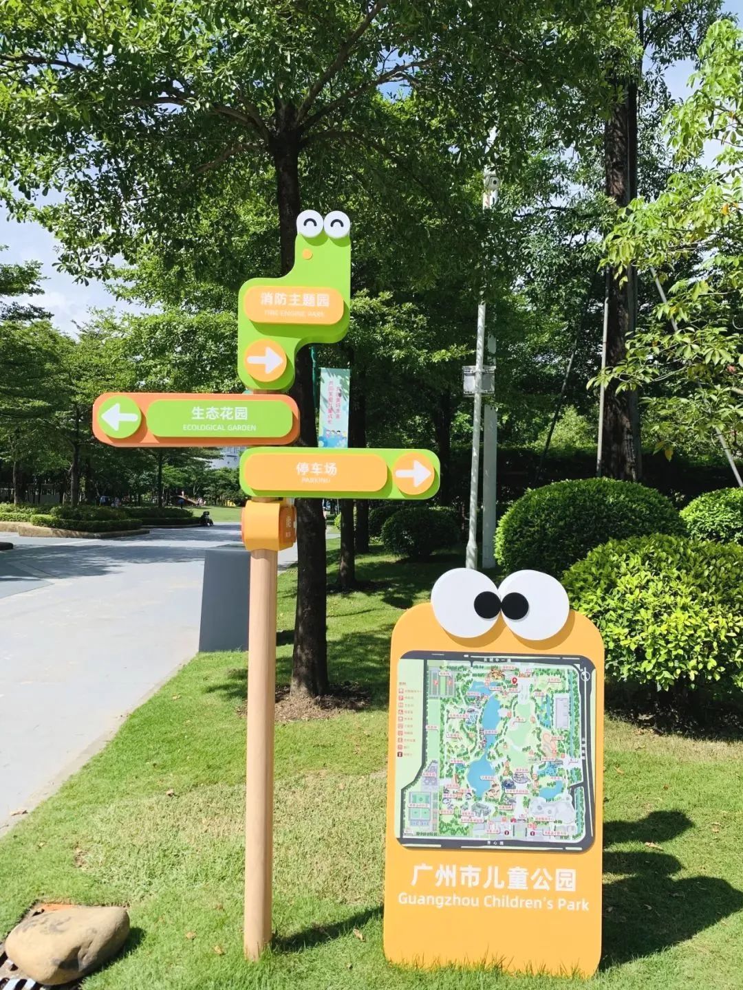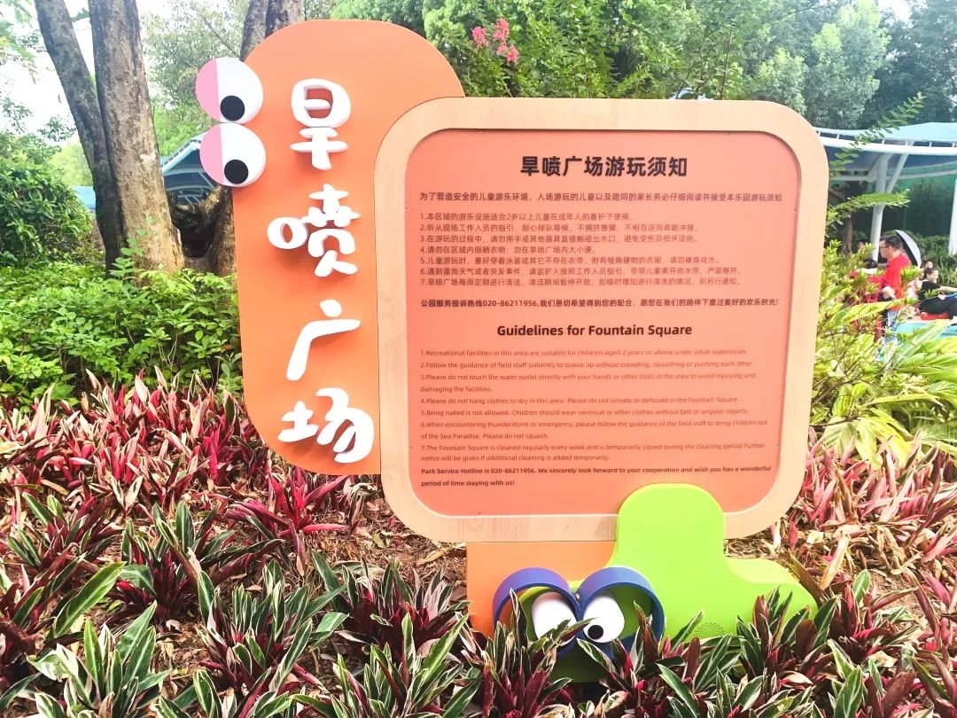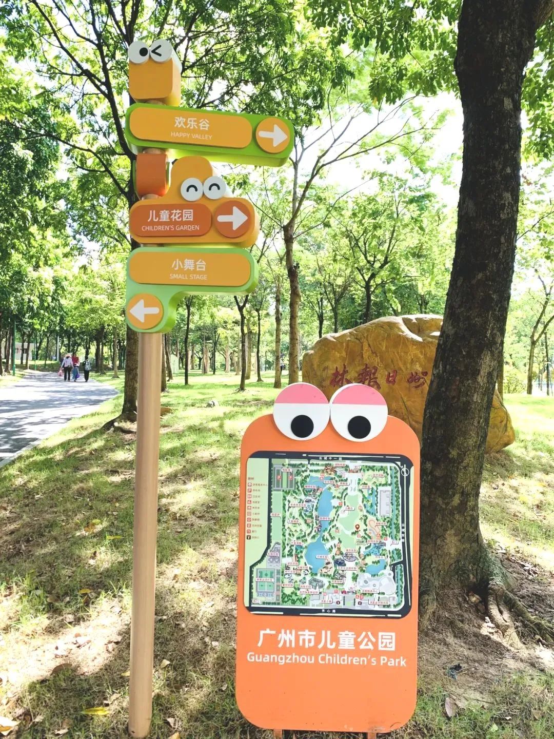 公园以 1 米高度为设计理念,全园设计颜色鲜明、造型可爱的游乐设施和标识系统、攀爬坐凳等;卫生间将卫生间服务半径从 250 米缩短至 150 米左右,内设儿童洗手台、第三卫生间和母婴室,呈现儿童友好关怀。如“五羊号”乐园是为视障、听障等特殊儿童设立专门休闲游乐项目、无障碍设施,引进全国首例“轮椅秋千”设施方便特殊儿童游玩,也是全国首个专门为残障儿童设计的游乐设施。园区内在各游玩设施旁为陪护家长提供了遮阴避雨休息设施,提升精细化服务水平。