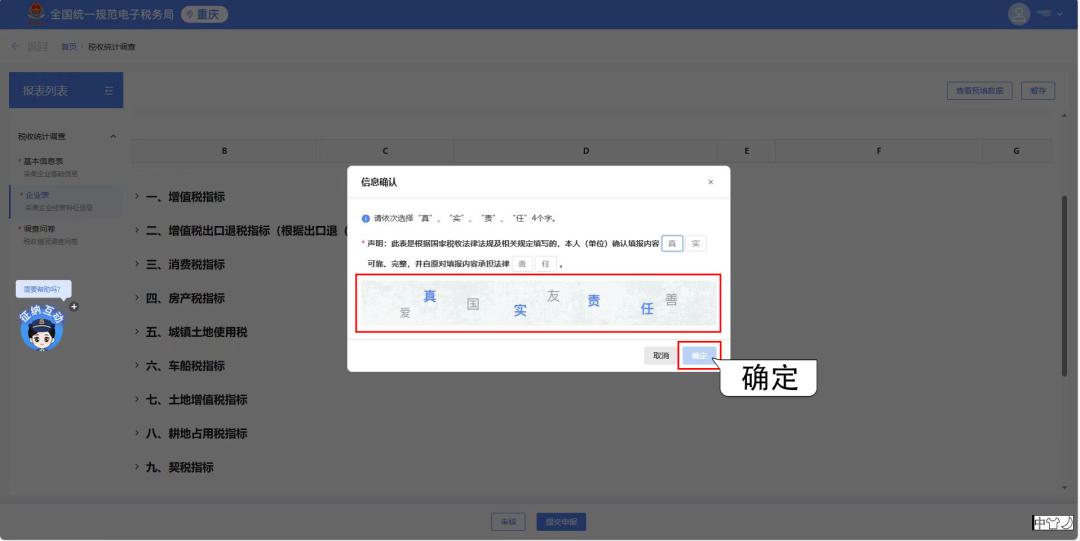 审核通过后,请您按提示选择“真、实、责、任”的声明信息后,点击【确定】即可提交数据。