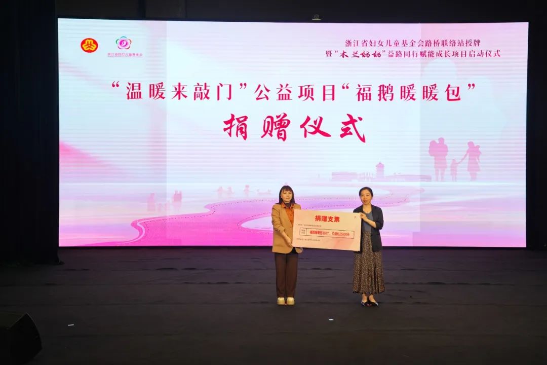 此次浙江省妇女儿童基金会向路桥区妇联捐赠价值2.5万元的“福鹅暖暖包”,将物资送到路桥困境妇女儿童身边,用爱心陪他们度过一个温暖的冬天。