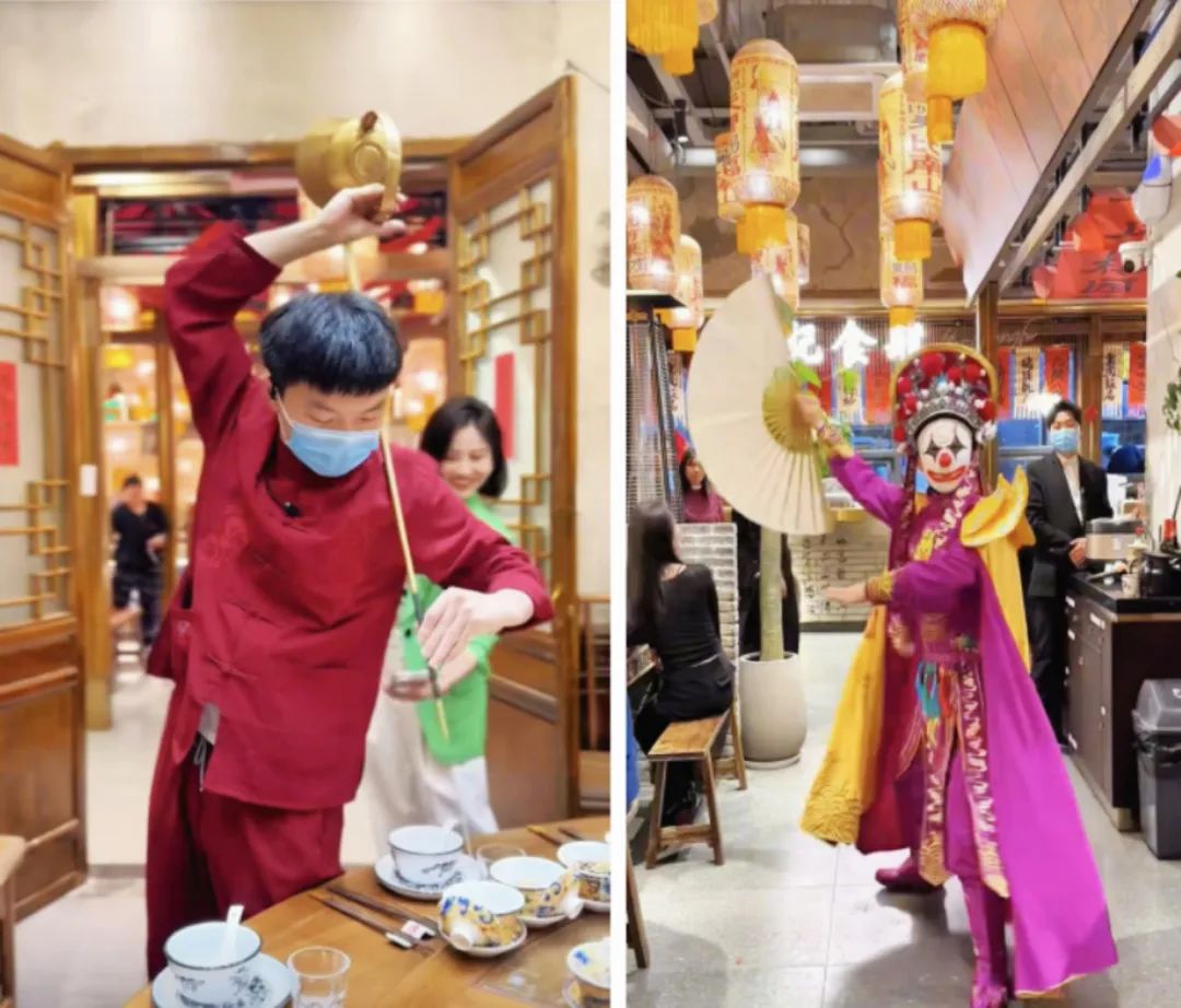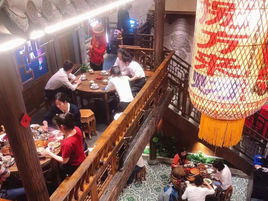 杨记隆府新粮仓店是安徽首店,以其独特的魅力吸引着众多食客前来打卡。步入店内,高挂的灯笼、古色古香的布景给人独特的视觉感受,品尝着辣子鸡、火爆黄喉、黄豆猪手等正宗的重庆风味菜肴,仿佛置身于山城的街头巷尾,还有精彩的变脸表演和川剧唱段,演员们精湛的技艺让人频频拍手叫绝。这样的“文化+场景式”餐饮在蜀山越来越受欢迎。