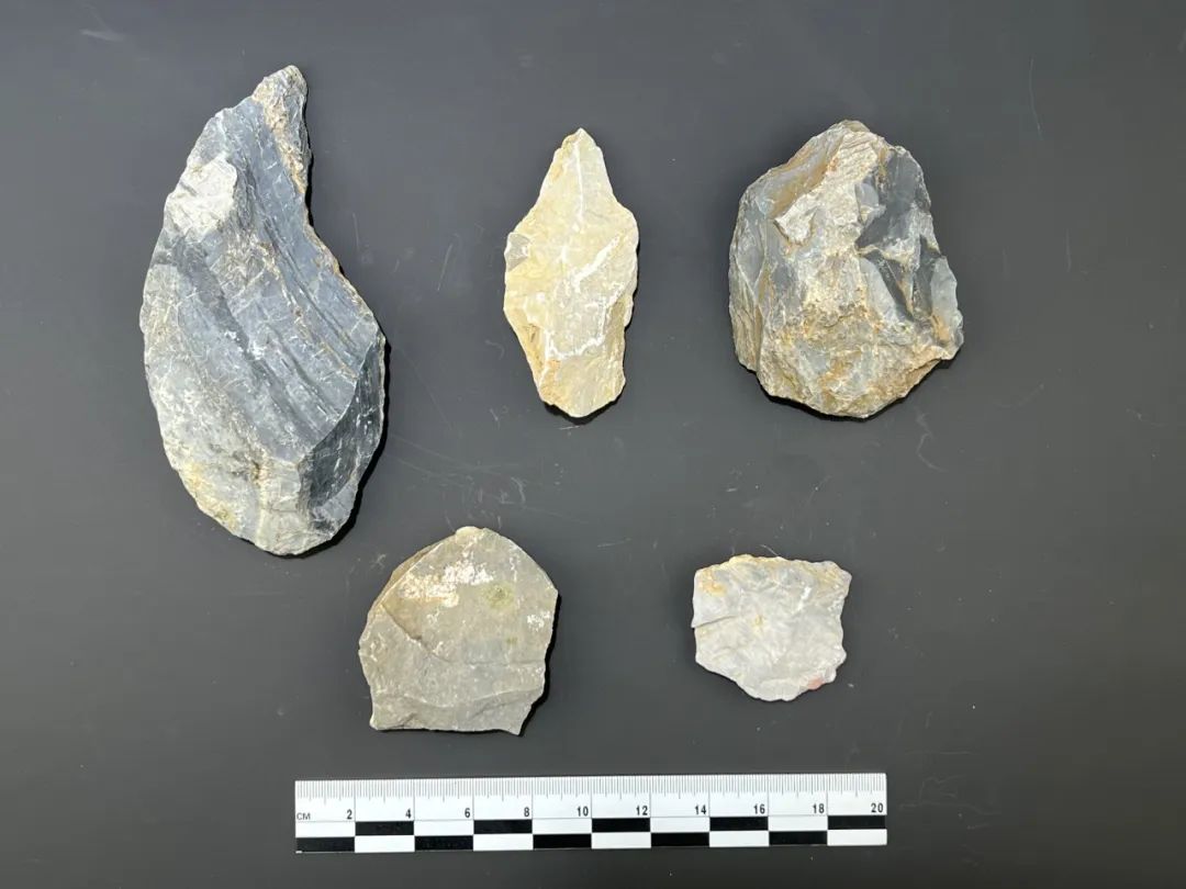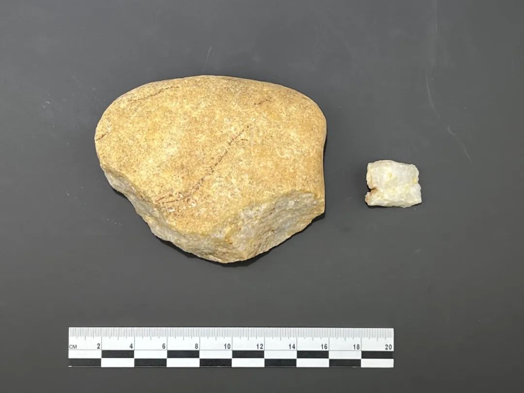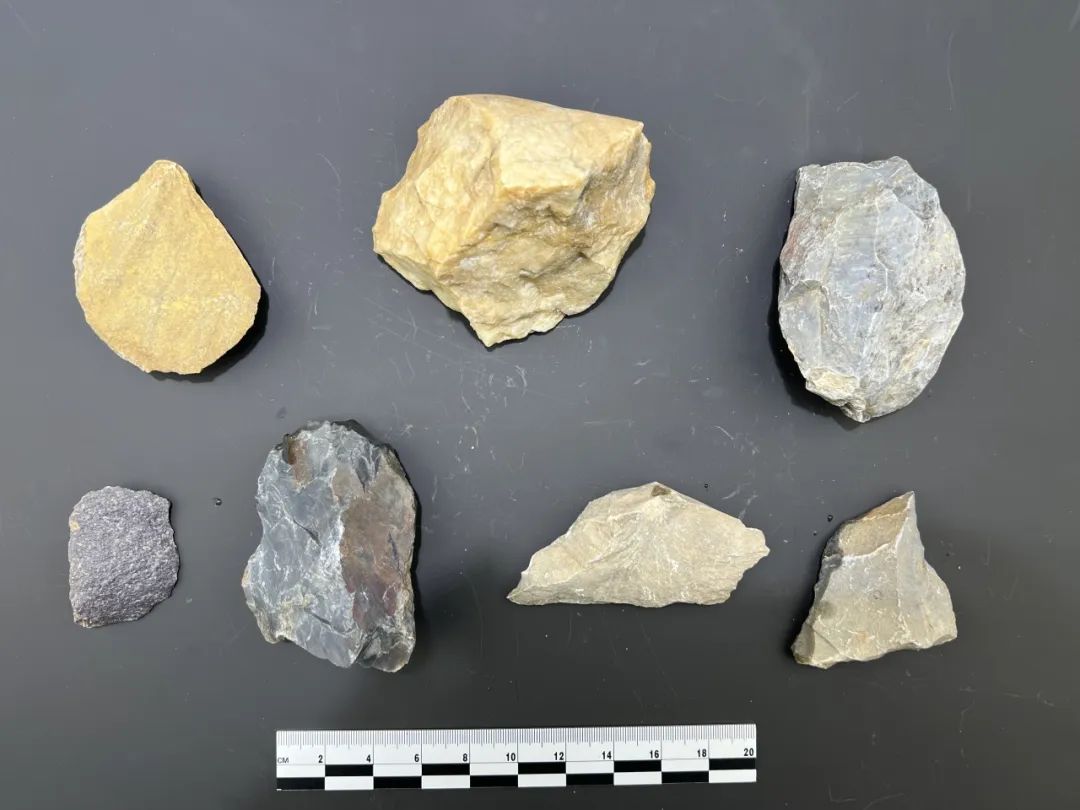 调查人员采集石制品近20件,原料包括石英岩、脉石英、千枚岩和粗面岩。石制品类型包括手镐、砍砸器、刮削器、石核、石片。