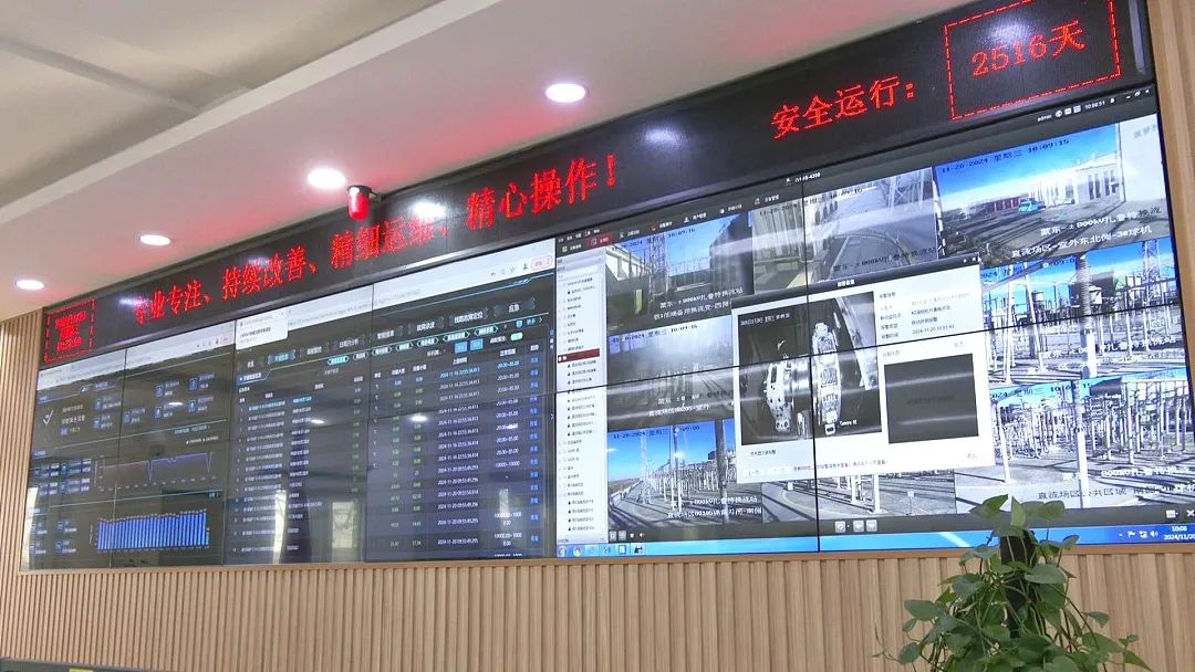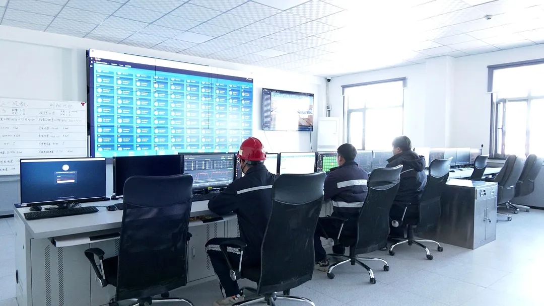 在±800千伏扎鲁特换流站主控室,大屏幕显示着换流站换流变、阀厅、直流场等各类设备的运行数据,运维人员正在通过运行数据观察分析设备运行情况。